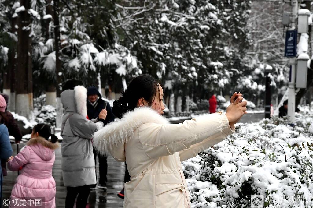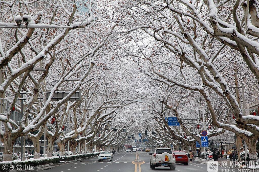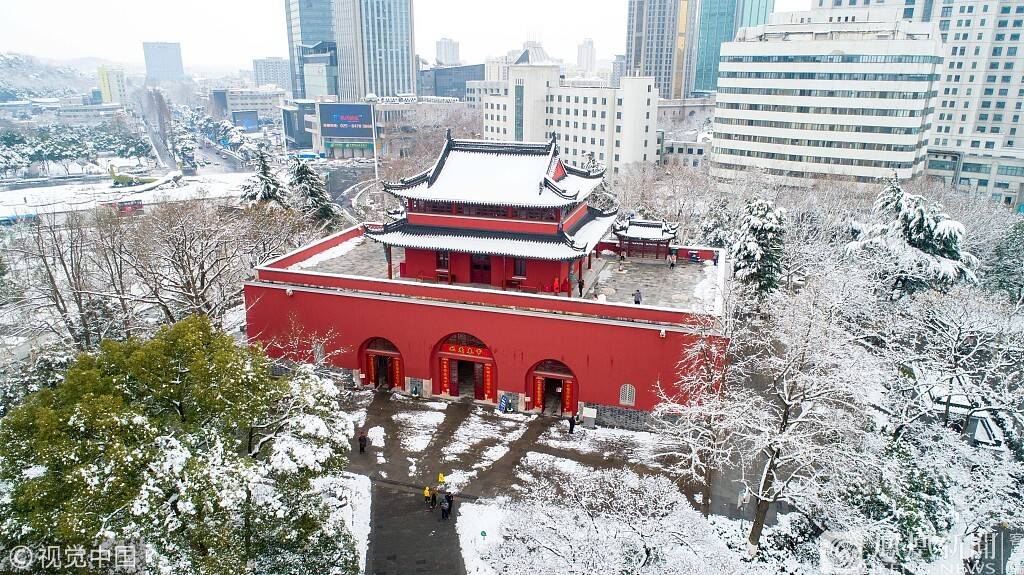 2月10日报道,2月9日,南京,鼓楼雪景。来源: 视觉中国