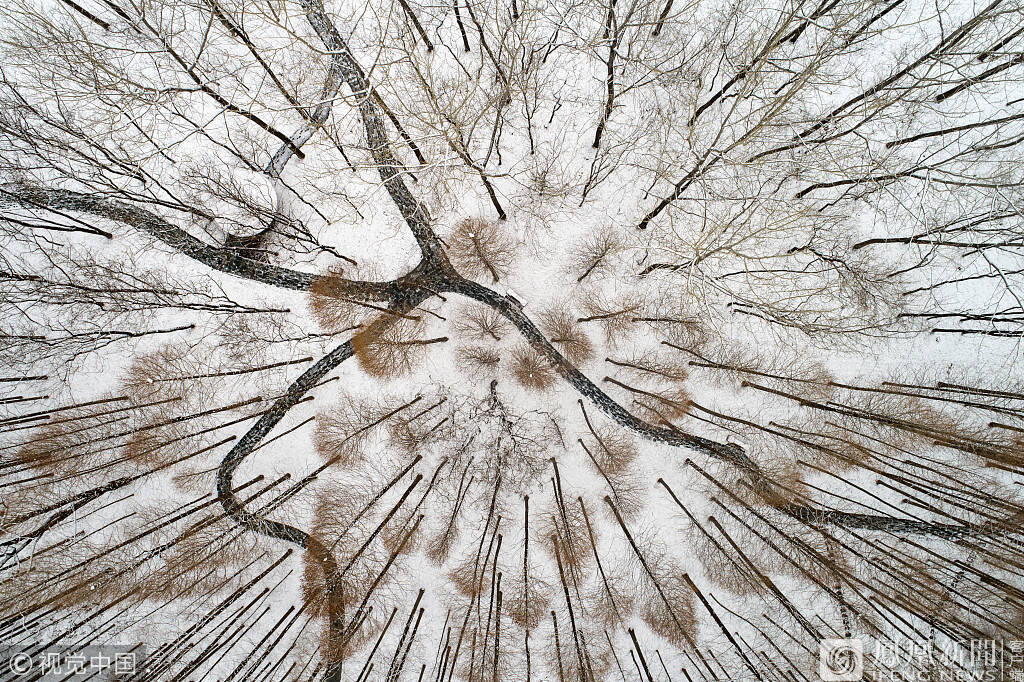 2月9日,江苏淮安,雪后的淮安古黄河民俗生态园层林尽染,如奇幻森林一般美妙。