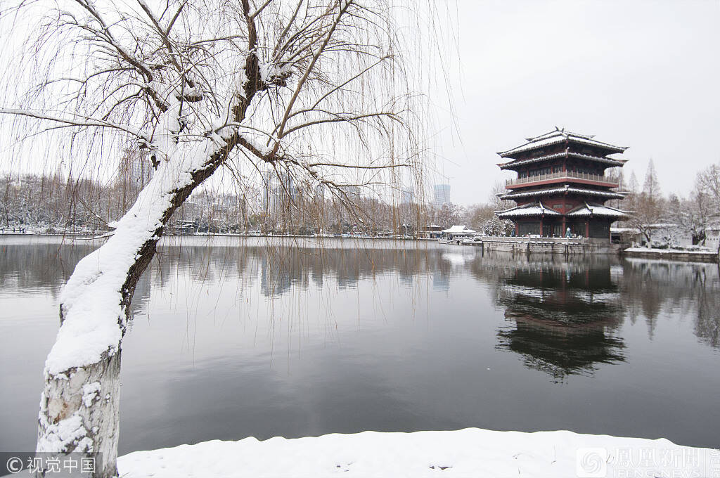 2月9日,合肥,大雪后的逍遥津公园白雪皑皑,银装素裹,景色宜人。
