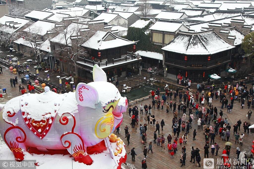 2月9日,南京,游客在雪后的南京老门东景区游玩。